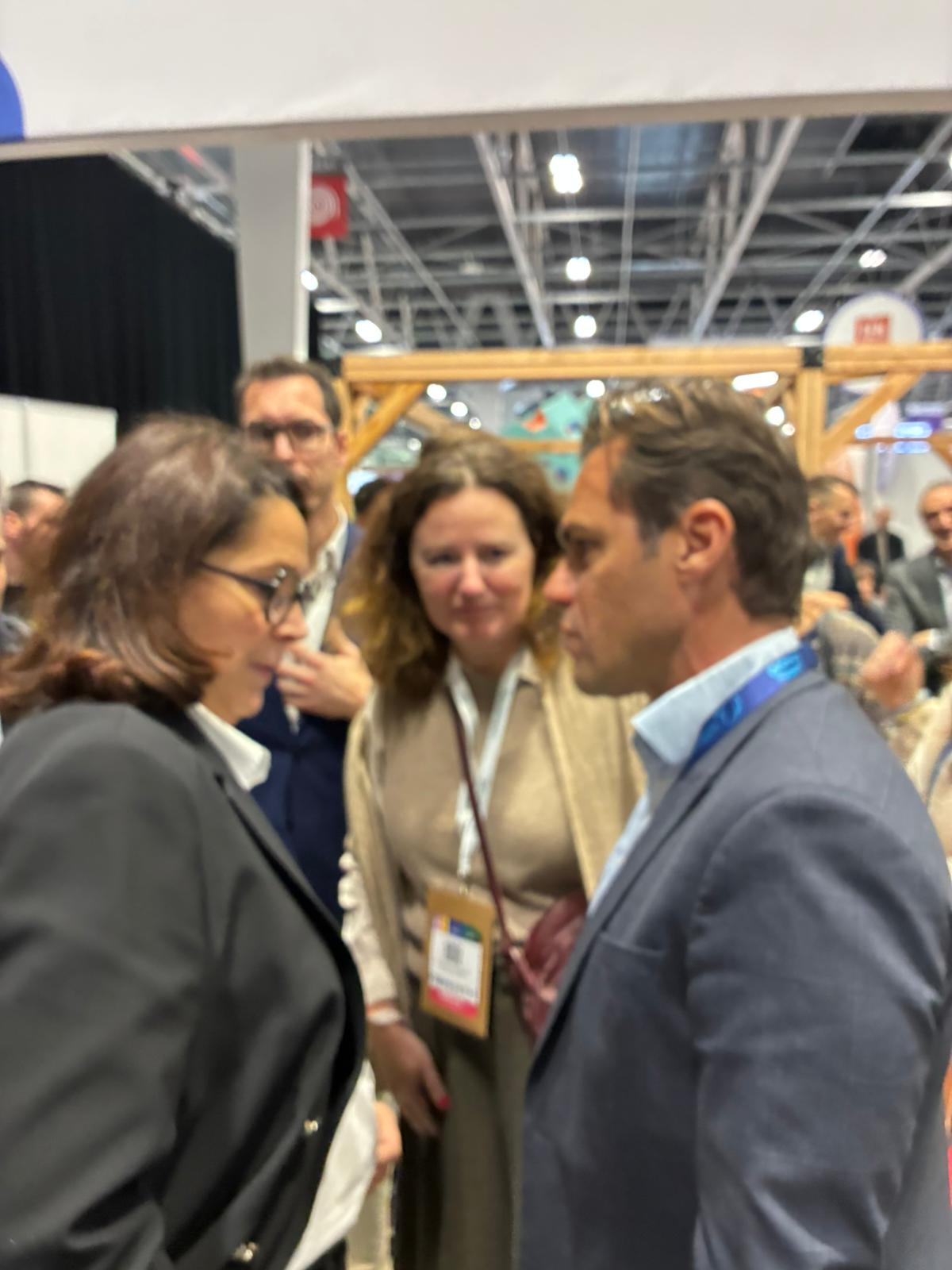 Ouverture du Salon. Le président du SNP, Yann PESANDO, a accueilli Madame la Ministre des Sports, sur le stand du Syndicat National des Patinoires.